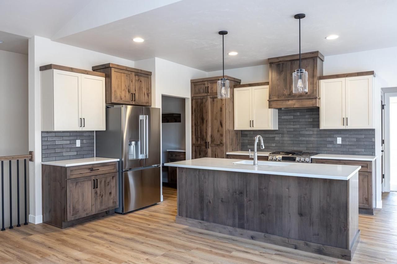 New construction ranch, custom designed as a Parade home in Freedom! Stunning kitchen with large island and quartz counters, beautiful cabinets, tile backsplash and hidden pantry. The living room has a soaring stone fireplace surround that extends up to the cathedral ceiling. Primary suite includes a bedroom with cathedral ceiling, bathroom with dual vanities, and a spacious walk-in closet. Enter the house from the large, finished garage to find a conveniently located bench, drop station, and laundry. Utilize a tucked away room as a pocket office or flex space. Plenty of closet space with custom shelving, quartz counters throughout, and an open lower level stubbed for a bathroom and with an egress window for future finishing. The tree line behind the house provides privacy and a nice view.
