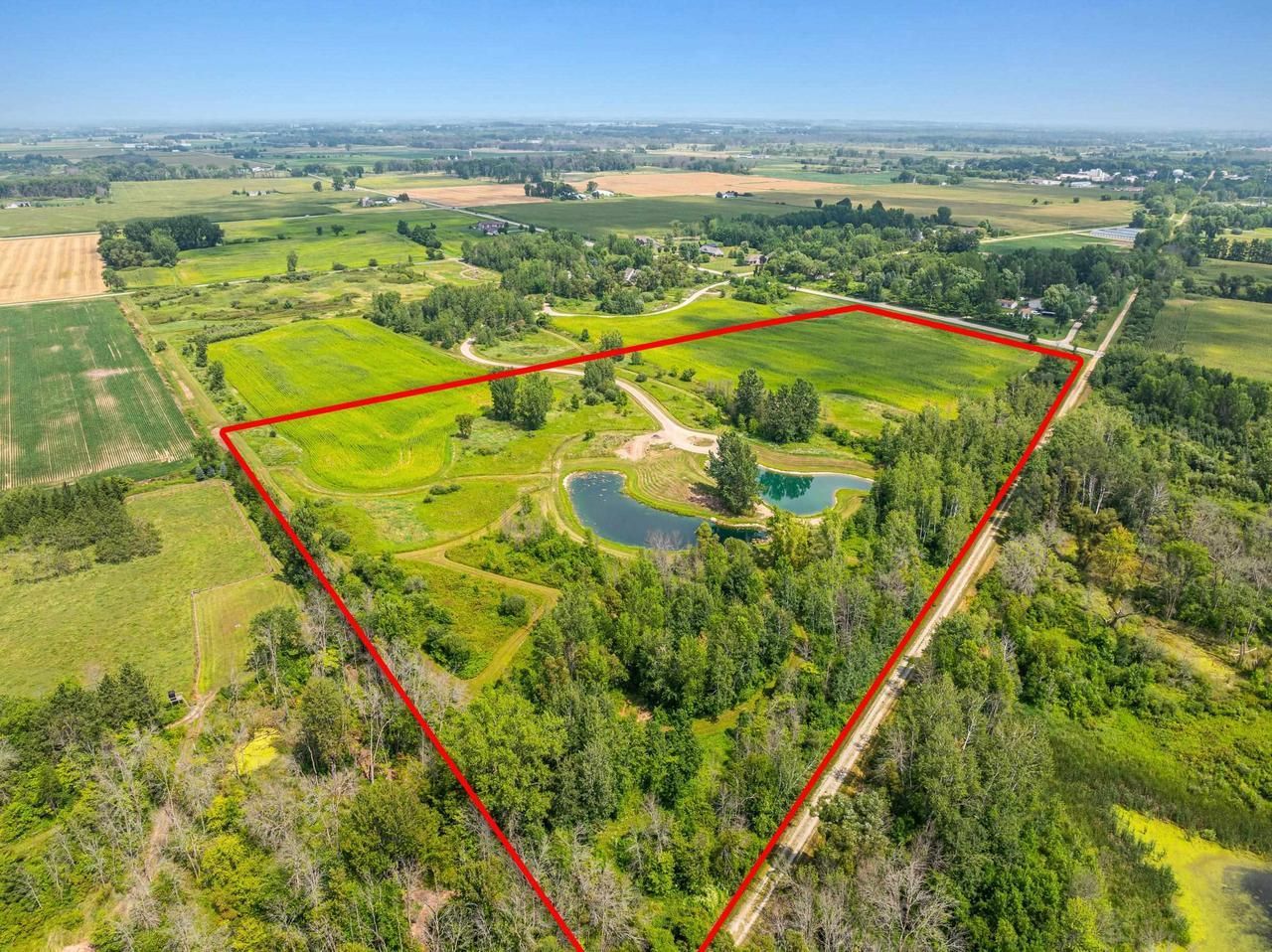 Escape to your own private paradise! This remarkable 22-acre buildable parcel offers an idyllic blend of tillable land, mature woods, and two ponds, creating a diverse and breathtaking landscape. Located conveniently between the vibrant communities of the Fox Valley & Green Bay, this property provides the perfect balance of rural tranquility and access to urban amenities. Nature enthusiasts will be captivated by the abundant wildlife, with deer and turkey frequently seen roaming the land. Build your dream home surrounded by natural beauty or create a peaceful weekend getaway. This is more than just a piece of land; it's an opportunity to create a legacy. Survey to be completed prior to closing. No access to property without prior approval.